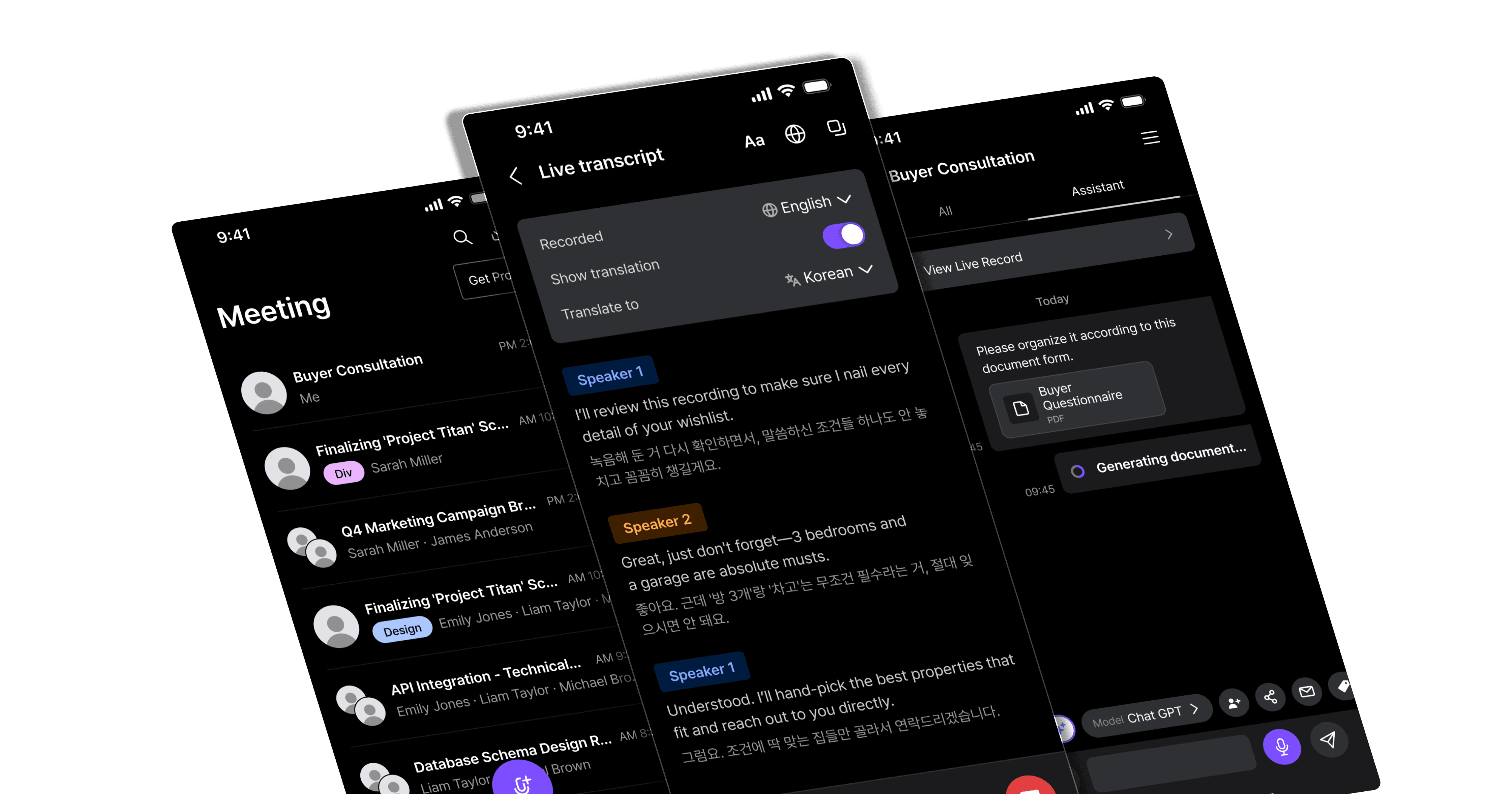 Attendees get live transcripts, translation, and auto-summaries in their language.