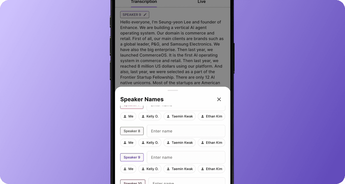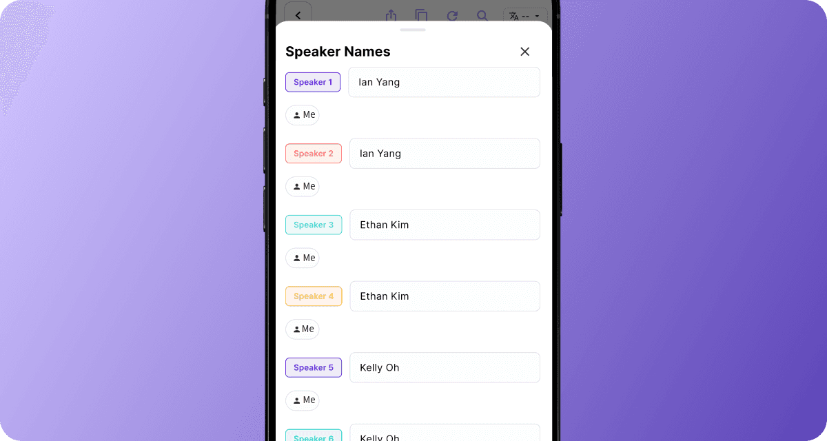 You can now set speaker labels. Each detected voice can be easily named so transcripts show exactly who’s speaking.