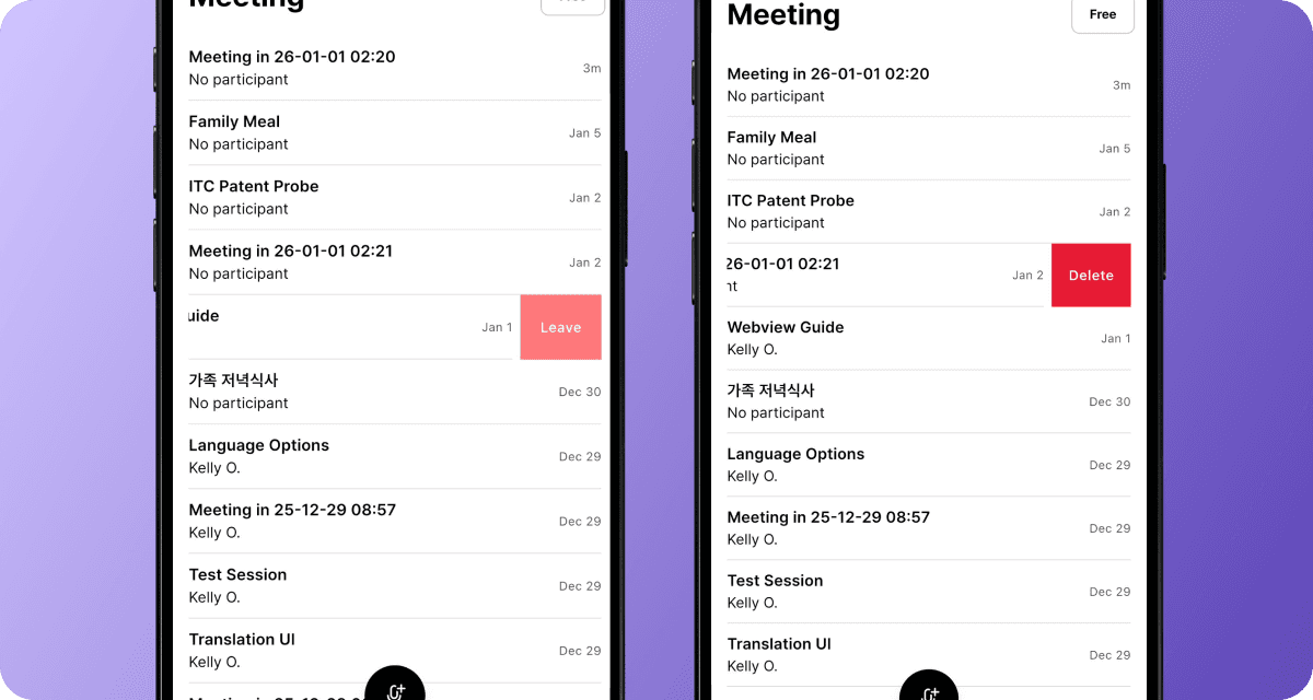 Swipe left on a meeting to quickly delete it or leave invited meetings.
