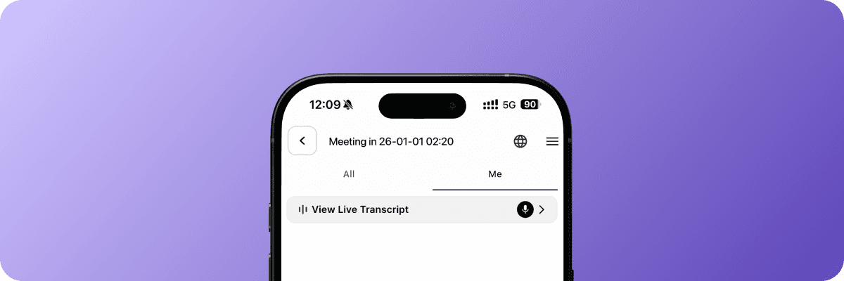 During meetings, you can see real-time translation in your preferred language alongside the original in the live transcript.