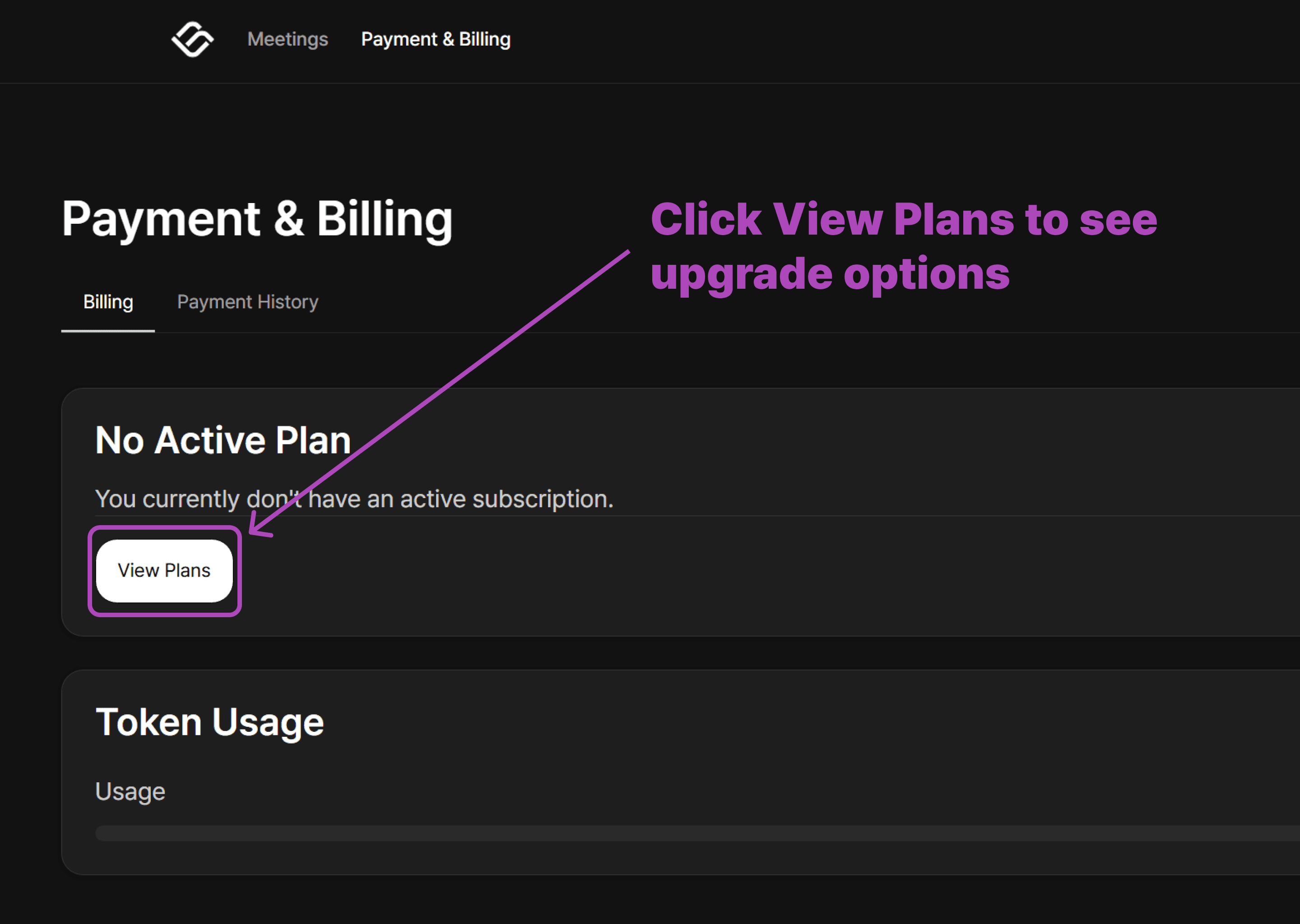 On the Billing page, you’ll see a button to explore available plans. Click View Plans to continue.