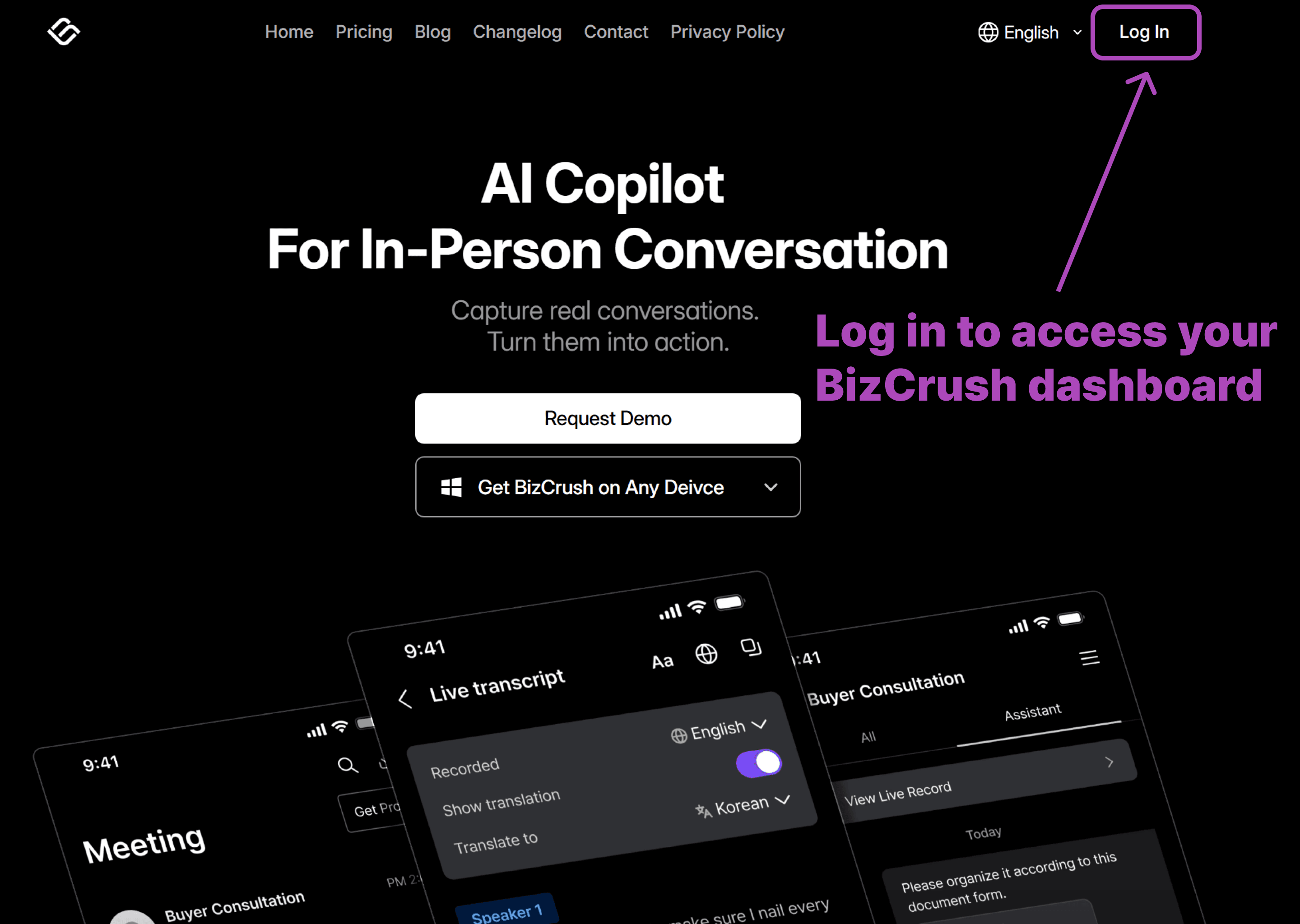 Start by signing in from the BizCrush homepage. You’ll need to be logged in to access your billing dashboard.