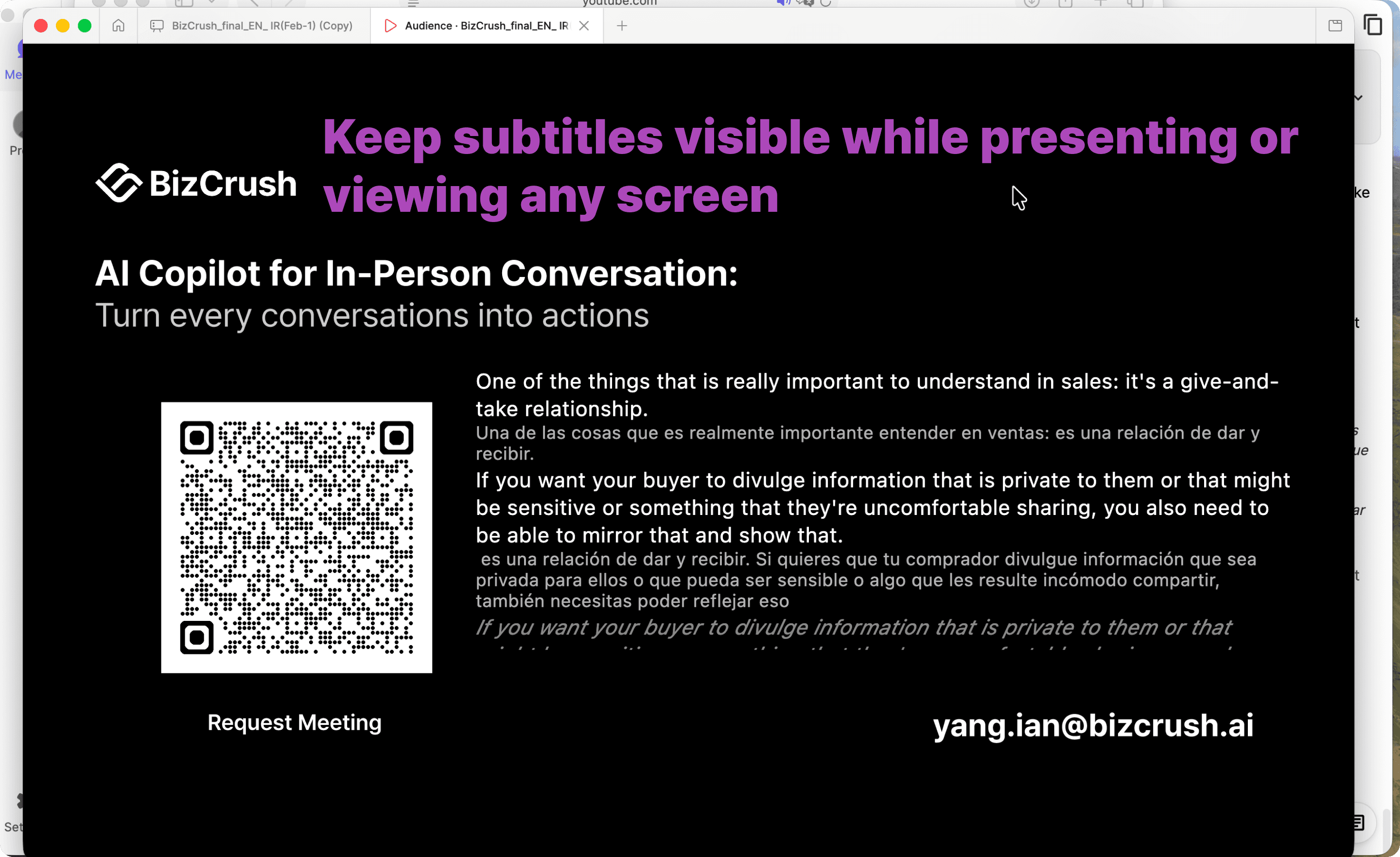 BizCrush’s Real-Time Subtitle PIP (Picture-in-Picture) Overlay lets you keep live captions (and translation) visible while you work in any app—slides, docs, browser tabs, or online meetings.